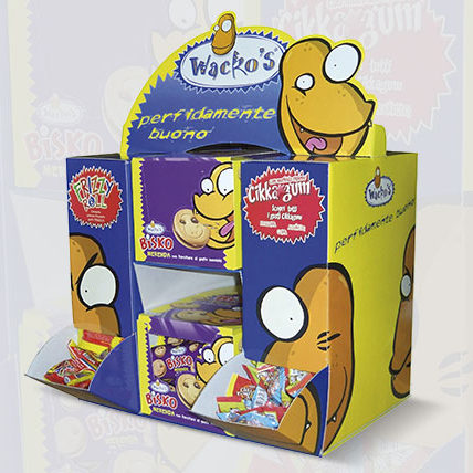 Espositore dispencer realizzato per chewing gum wacko’s. Materiale punto vendita…